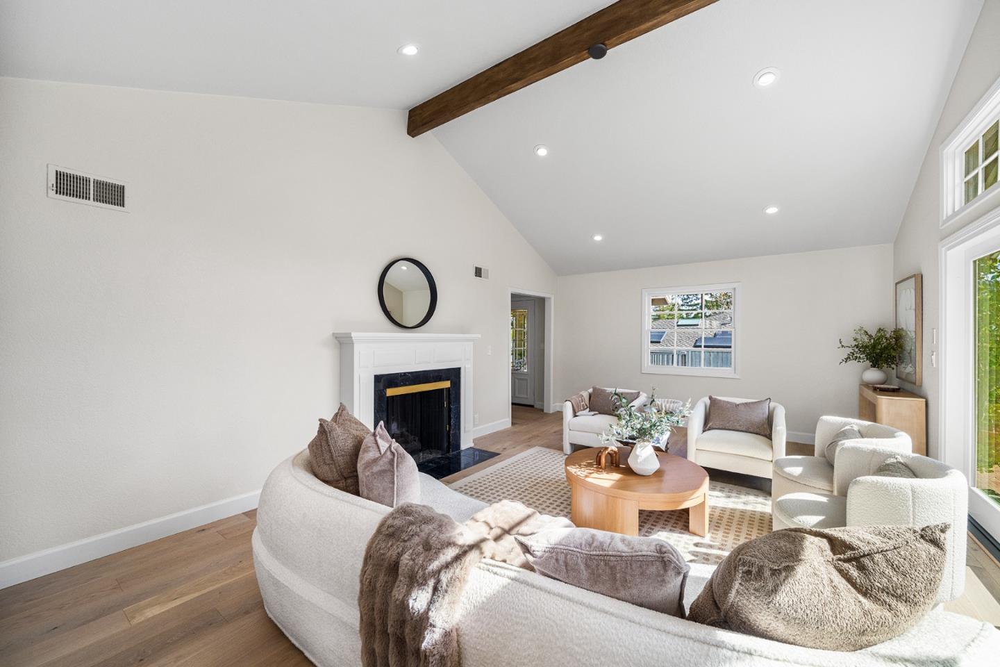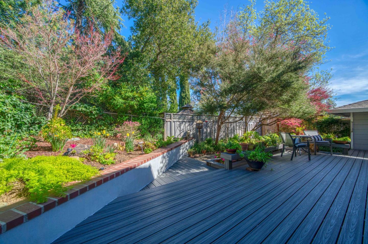 Nestled behind lush, mature landscaping, this updated single-story residence opens to a serene garden setting in Monte Sereno. Created for easy California living, the home pairs timeless design with refined improvements. A spacious, light-filled living room features French doors, vaulted ceilings, and a classic fireplace. The remodeled kitchen presents quartz countertops, stainless steel appliances, and a wet bar or coffee station. A welcoming family room surrounded by windows supports both entertaining and everyday comfort. The primary suite provides a calming retreat with a spa-style bath and walk-in closet. Notable features include brand-new wide-plank engineered flooring, fresh interior and exterior paint, recessed lighting, AC, a pull-down attic for additional storage and much more. . The unique front grounds include a spa set among established trees, blooming plants, succulents, and turf. In the rear yard, a deck spans the length of the residence, framed by natural greenery, along with a sunny corner ideal for a vegetable garden. A detached garage includes an epoxy-coated floor and overhead storage. The extended paver driveway is lined with orange trees. This special home is positioned on a quiet court, just minutes from downtown Los Gatos. Distinguished Los Gatos schools.